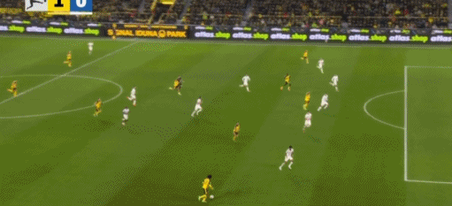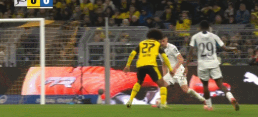 第43分钟,打破僵局,扬-科托助攻布兰特破门,多特1-0霍芬海姆